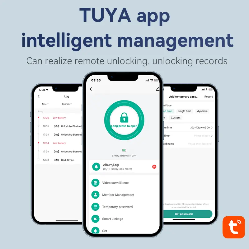 - การปลดล็อกระยะไกลด้วยแอปอัจฉริยะ: แตะเพื่อปลดล็อกจากระยะไกลผ่านแอปเฉพาะ เพื่อให้แขกเข้าถึงได้ง่ายและจัดการบ้านได้